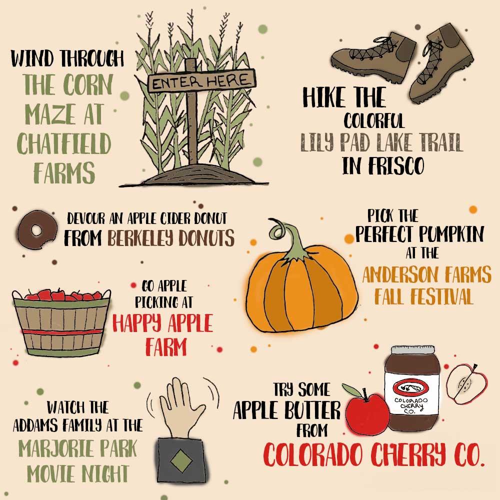 illustration & Social Social media Graphic for fall activities in Colorado Social media Instagram graphic for audience response PRINT Illustration for a gift PRINT Map of the best family playgrounds on the Front Range for Colorado Parent. PRINT Illustration of boy picking apples for a Westchester apple harvest article Social graphic Icons for a list of family-friendly holiday movies